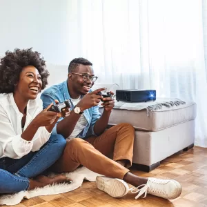 Sumérjase en la acción con la experiencia más inmersiva posible: una pantalla gigante de hasta 300 pulgadas.* Mucho más grande que el televisor promedio, los juegos multijugador en pantalla dividida son más agradables si se juegan en una pantalla grande.